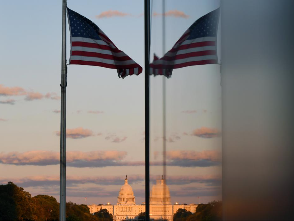 这是2025年10月8日在美国华盛顿拍摄的日落时分的国会大厦。新华社记者李睿摄