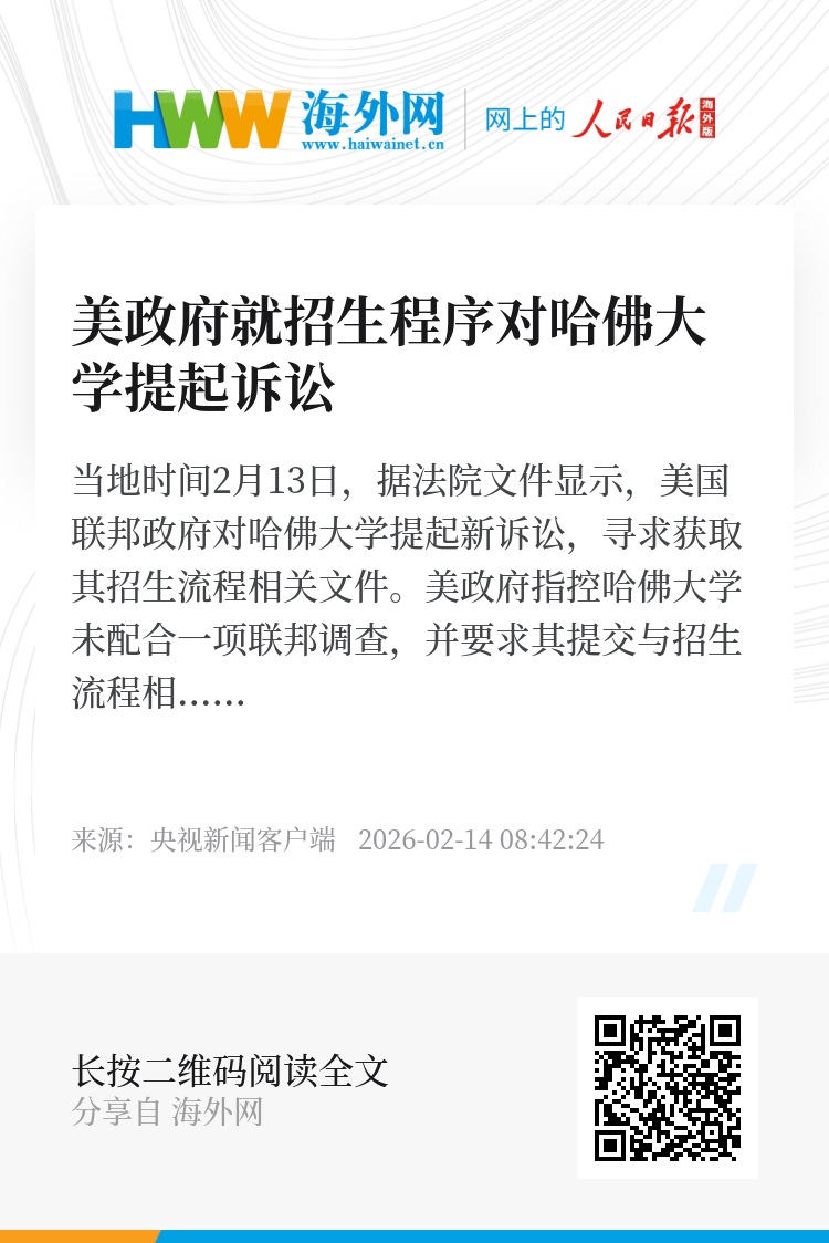 当地时间2月13日,据法院文件显示,美国联邦政府对哈佛大学提起新诉讼,寻求获取其招生流程相关文件。